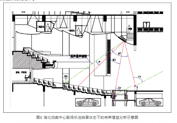 无论建声设计还是扩声设计,观众席特别是关键区域的直达声和近次反射声是重点分析的要素。在这一过程中,对于乐池中伴奏的拾音,处于扬声器覆盖区或边缘上,需要避免声反馈的产生。