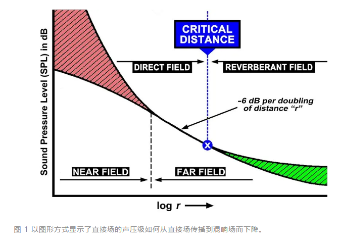 请注意,虽然在整个混响场中混响声压级的变化小于 3 dB,但由于平方反比定律,直达声继续下降。对于语音和快节奏的音乐,较高的直接/混响比是首选——如在典型的自由场中那样 (而较低的直接/混响比,其中混响声比直达声更大)。
