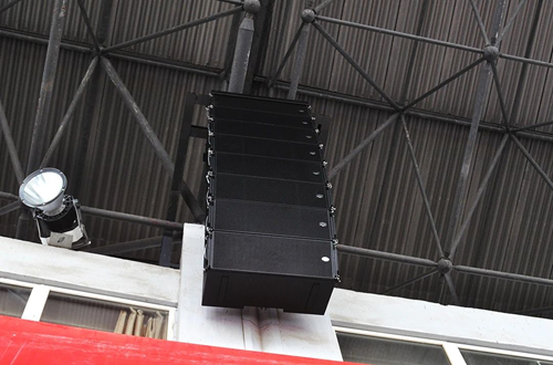 为保证场内各个区域声压级都有较好的均匀度覆盖,主扩声系统采用16只Wharfedale的WLA-312F双12〞三分频防水线阵分别以左、右悬挂的形式分为两组均匀分布于观众区。WLA-312F采用 1.4"(音圈)钕铁硼钛膜压缩式高音设计,低频饱满且富有弹性,高频明亮具有穿透力,且具有较强的指向性控制,能够灵活控制声场覆盖区域,其高灵敏度、高声压级、宽频率响应以及出色的投射能力,能提供出众的中频指向性控制和清晰的语音重现,以使声像更精准。