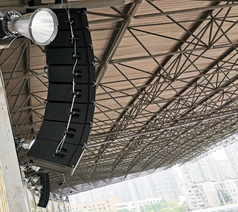 由于本次为改造项目,建设方无法提供音箱在顶棚安装的条件,因此只能订做安装结构进行安装,考虑到项目的使用环境,设计团队统一采用Wharfedale的WLA系列音箱作为该场馆的主扩声系统。