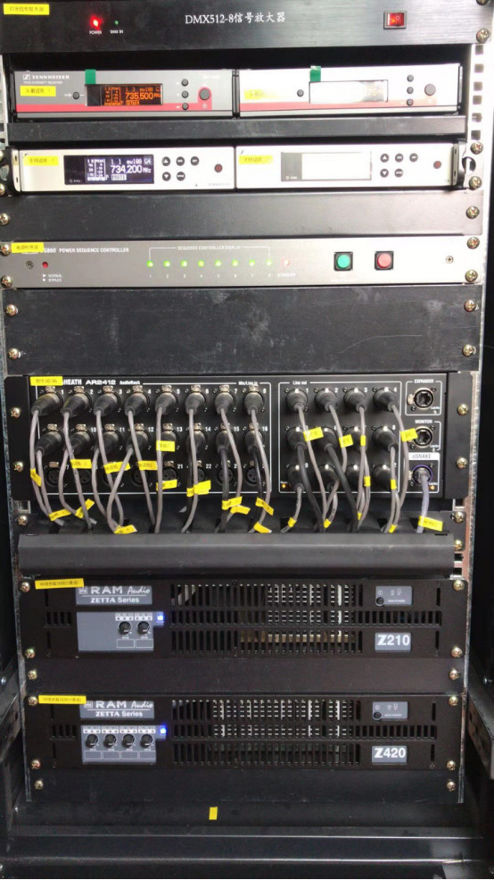 十二只JBL Control28-1L由原装进口的西班牙RAMAUDIO Z系列功放驱动(一台Z210和一台Z420),ZETTA系列虽然是RAMAUDIO的入门之作,但音质上丝毫不打折扣,采用传统环型变压器供电,确保高保真的功率输出,与JBL Control是绝佳的搭配。RAMAUDIOZETTA系列有两通道和四通道的选择,也是全球DOLBY影厅的合作伙伴。