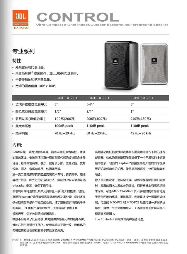 原设计要求扩声系统一定要高保真,而且要有多声道效果声的要求,经过学校老师的专业考察,最终选择了JBL Control28-1L高保真紧凑型扬声器,作为一款经典的8寸扬声器,音质是第一要素,JBL独有的8寸橡胶边单元保证了扬声器足够的低频下潜和反应速度,1Kapton音圈的高音,安装在一个耐冲击性聚苯乙烯HIPS箱体里,能够还原45Hz-20KHz的频率响应(-10dB),这个频宽范围在8寸扬声器里绝无仅有。480W的峰值功率输出能产生118dB peak最大声压级。