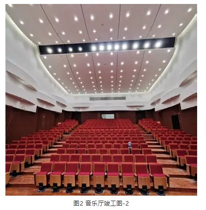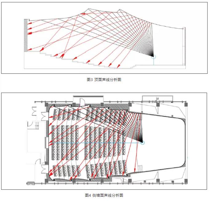 建筑体型优化方面,在空间建筑布局已定的情况下,通过装饰手段优化建筑体型,为观众席提供充足的早期反射声。