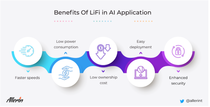 使用 LiFi 有助于降低能源消耗,因为 LED 光源消耗的功率显着降低以传输更多数据。